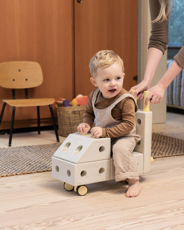 Included in the MODU Curiosity Set, use the MODU Base Block as a versatile base for building rocking toys, adjusting the size and height of the rocking toy as your child grows. Rocking toys remain relevant as your baby transitions into toddlerhood, fostering creative play and encouraging imaginative scenarios, such as transforming into fearless cowboys conquering the wild west.