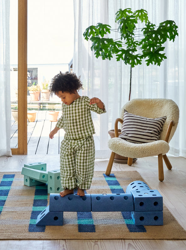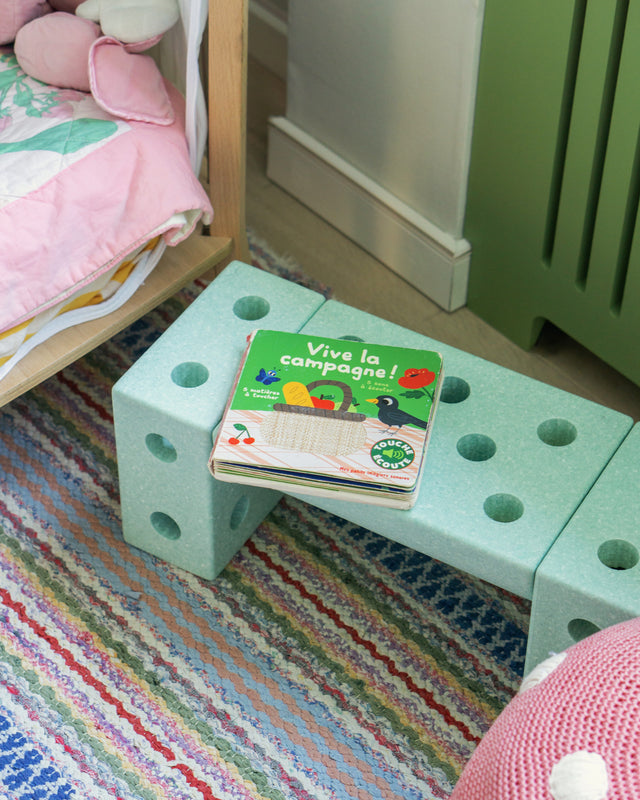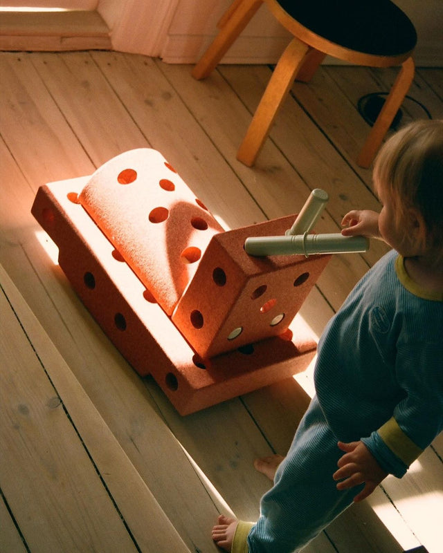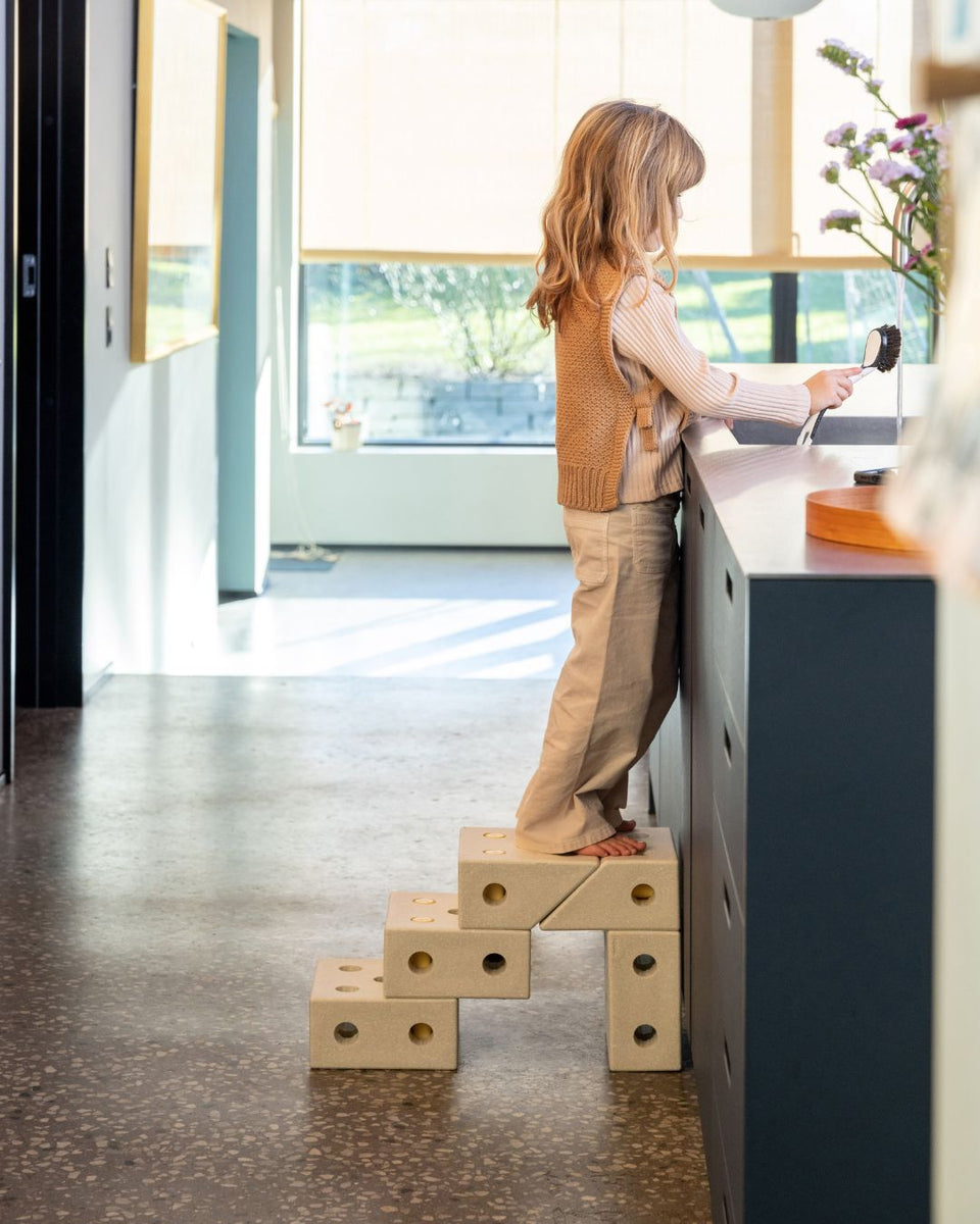 Toddlers experience an incredible confidence boost when they conquer challenges. Build everyday helpers that aid them in reaching their goals, such as a small stool for sitting on when putting on their shoes in the morning or a set of stairs. Climbing stairs is a great overall exercise that improves both balance, coordination, and agility. The lightweight material makes it easy for your little one to move the little helpers around the house – from the kitchen, where they can help with dinner, to the bathroom for brushing their teeth before bed.