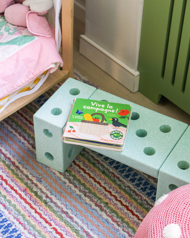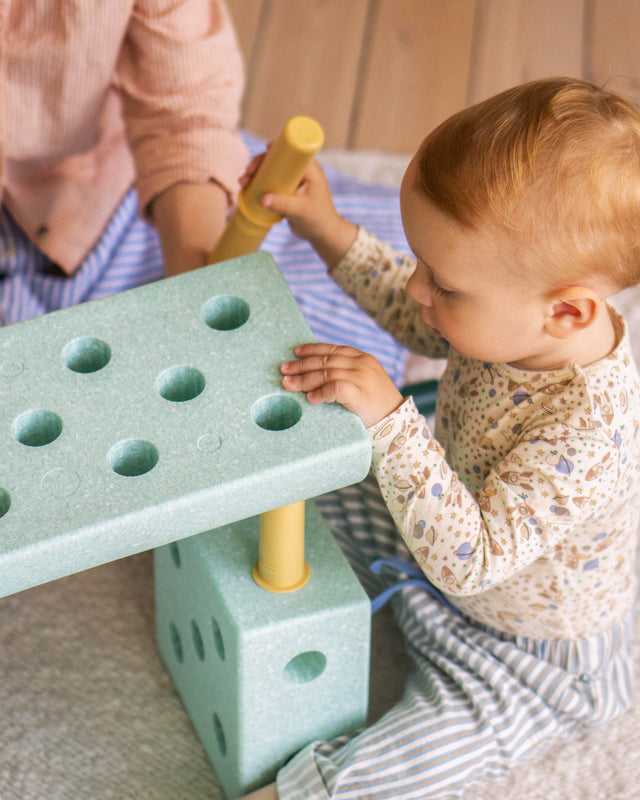 He's at a stage now where he really enjoys building in his own way, just placing the connector pegs in random places while singing the kids' song ‘Building Myself a Car’ — so cute. I actually built a little car for him at some point, when he was still a little too young to use it. Then suddenly, a few months later, he was driving around all by himself. Seeing that development has been really fun.