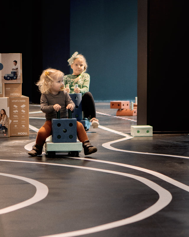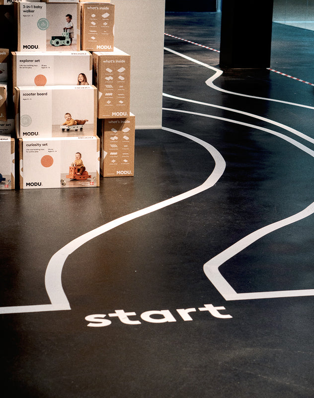 Rev up your creativity at the MODU Race Track, a highlight of the winter holidays 2024 next to Illums Bolighus at Lyngby Storcenter. Our 200 m² racing arena, complete with twists and turns, welcomed kids of all ages to craft and compete with their unique MODU vehicles.