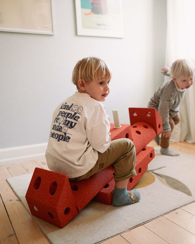 Our home is always filled with love, energy, and a bit of chaos. The boys love moving and playing together. They come up with cool building projects, like race cars, airplanes, and race tracks for their cars. Additionally, we use MODU as tables, obstacle courses, and all sorts of other things. There's often a part of MODU involved when they play. This morning they built a soccer goal, which they're excited to come home and play with again later.