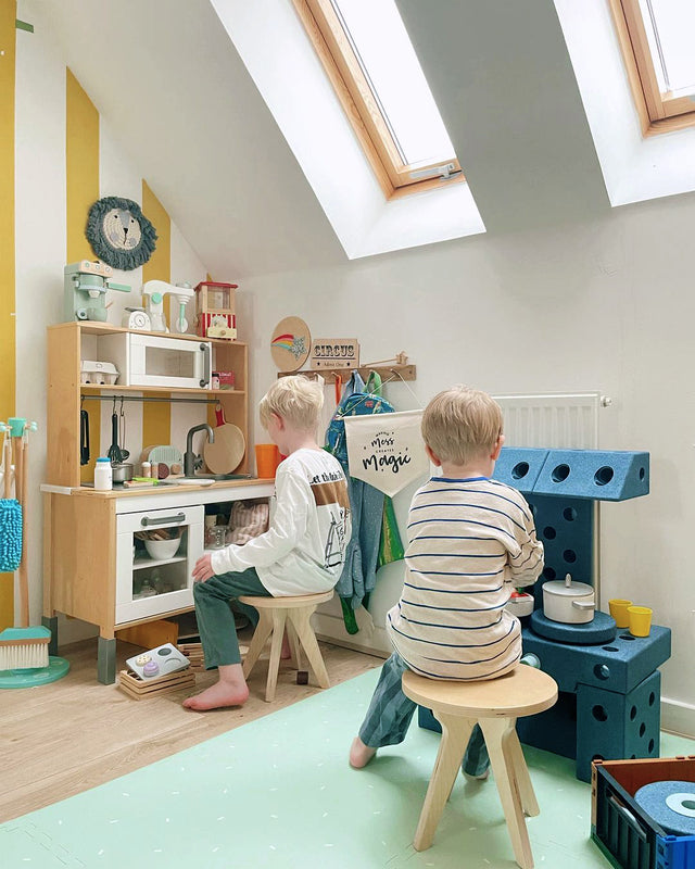 Setting up a play environment that encourages sibling interaction is key. Here are some tips to help create a space where your children are more likely to play together: