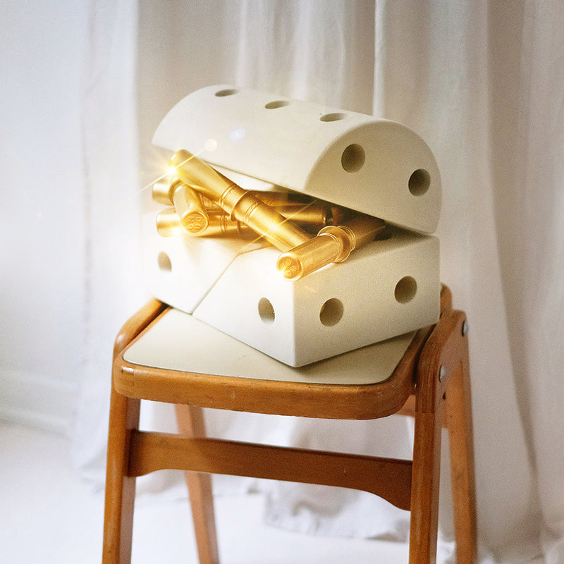 In the month of October 2021, we have placed no less than 20 golden pegs (!) in 20 random MODU kits all around the world. So if you buy a kit this month (01.10.21 — 31.10.21) and discover a golden treat in the box, you are one of the lucky winners of the hunt for THE GOLDEN PEG. This treasure will grand you a brand new MODU kit of your choice, worth up to 1799 DKK / 245,95 EUR / 223 GBP / 2538 SEK.